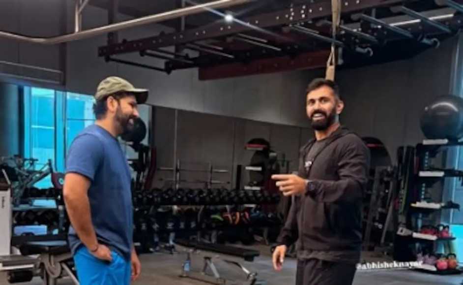 Rohit posted an Instagram story from a gymnasium with his close friend Nayar, who also at times doubles up as his personal coach.