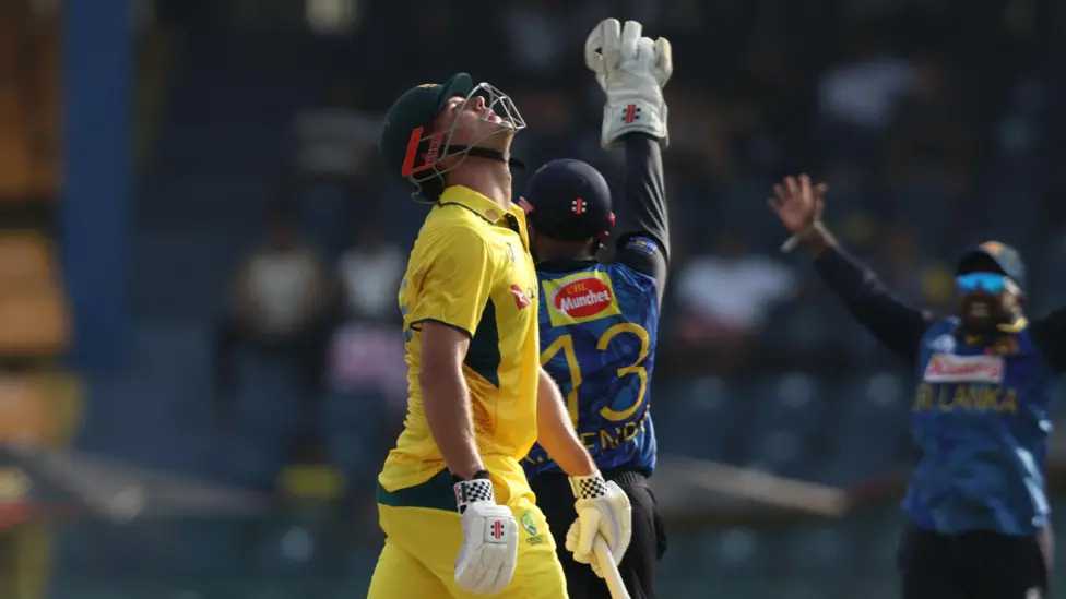 The tourists rebuilt to 83-4 but Marnus Labuschagne fell lbw to spinner Maheesh Theekshana for 15 and Alex Carey was caught in the next over for 41.