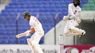 Debutant Tanzim Hasan Sakib made the first breakthrough, getting Brian Bennett caught behind off an outside edge.
