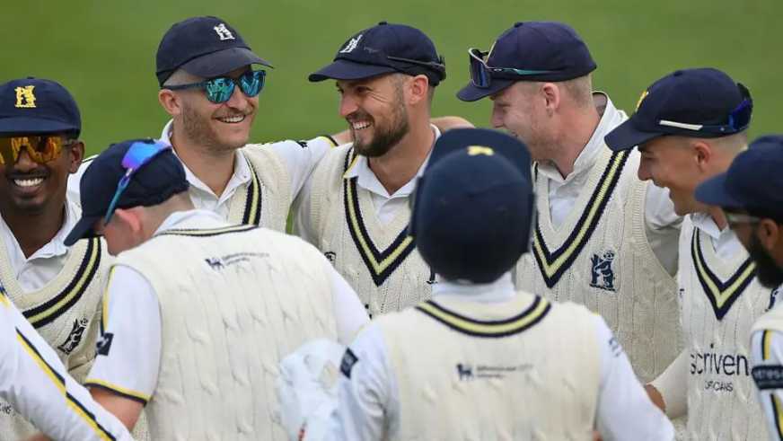 England paceman Potts got the key wicket of Sam Hain, edging behind to Ollie Robinson and he struck again next ball when another of the Bears’ England men Dan Mousley chipped one straight to Dan Hogg at mid-wicket.