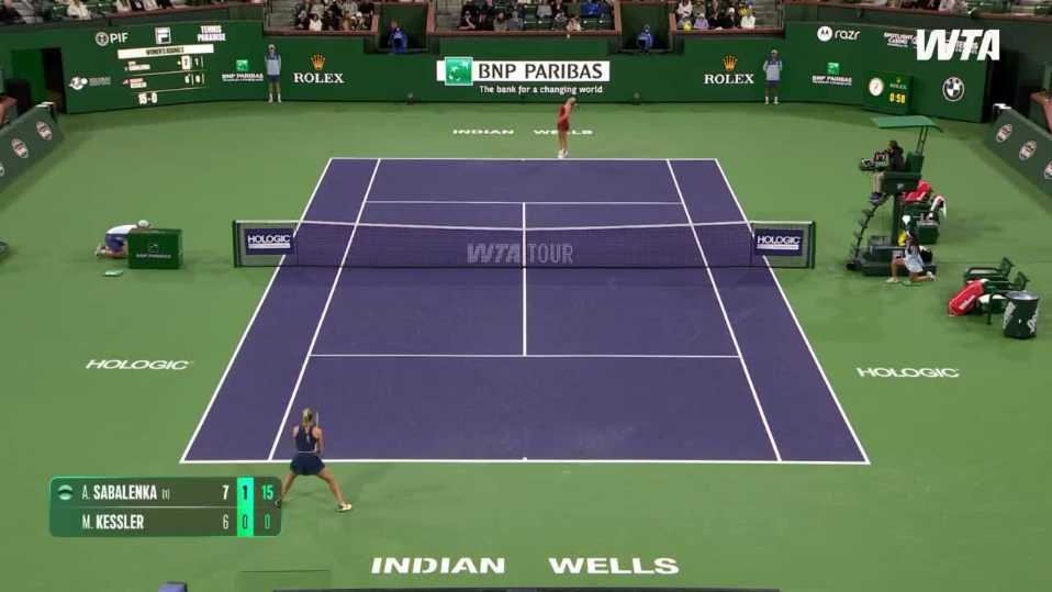 4: Sabalenka won four straight points in the first-set tiebreak en route to wrapping up a one-set lead in 50 minutes. After losing the first point, Sabalenka won both points on Kessler’s serve, and hammered two unreturnable serves to keep her lead.