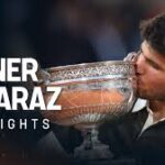Alcaraz battled back from two sets down to win one of the best Grand Slam finals in living memory 4-6 6-7(4) 6-4 7-6(3) 7-6(2) and retain his title in Paris.