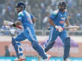 When it came to the chase, an opening stand of 105 in less than 19 overs between Rohit and Shubman Gill (31) put India firmly in the driver’s seat. The partnership was broken by a flying catch in the covers by Phillips, which brought Virat Kohli to the crease.