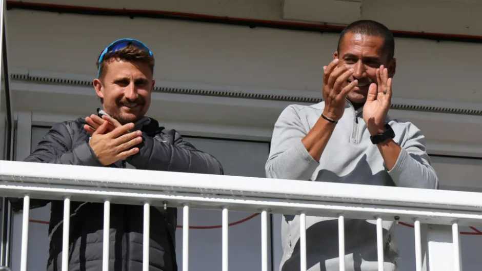Thomas, made interim coach of Leicestershire with former England batter James Taylor, is sat having lunch during a County Championship match.
