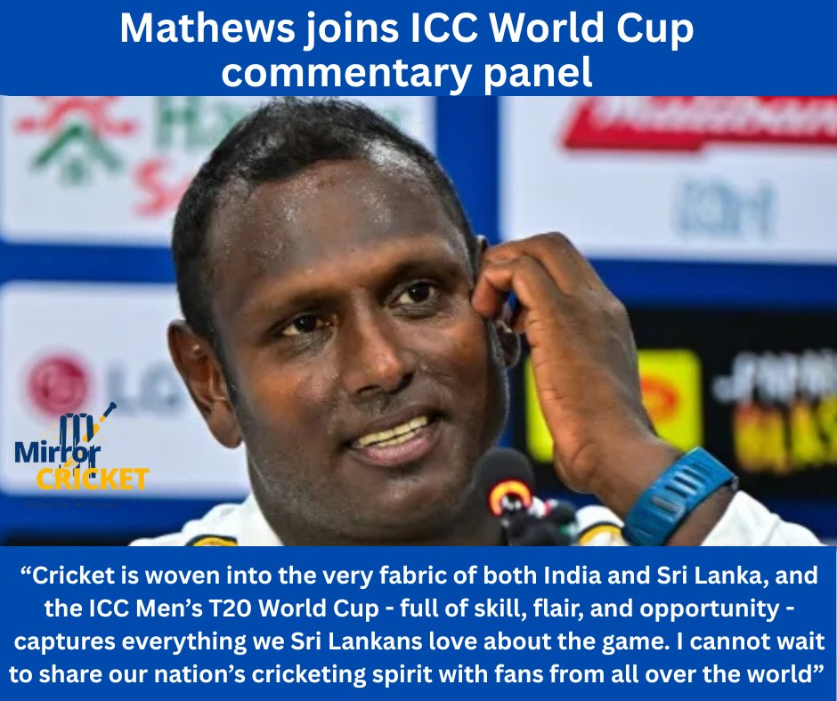 Former Sri Lanka captain Angelo Mathews has been named to the ICC commentary panel for the upcoming T20 World Cup, marking another milestone in his distinguished cricketing journey.