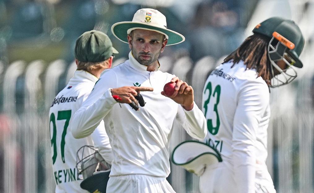 Maharaj’s sliding delivery hit Agha on the shin as he went to play for the turn but missed the straight ball. In his next over, Maharaj found the outside edge of Shakeel’s bat and Markram, who had dropped Abdullah Shafique in the slip on Day 1, didn’t miss out.
