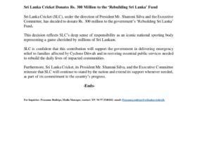 SLC’S MAGNANIMOUS GESTURE – SLC Exco under President Shammi Silva donates Rs.300m for Govt’s ‘Rebuilding Sri Lanka’ Fund