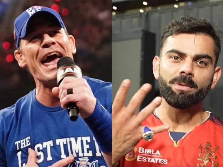 Recently, Royal Challengers Bengaluru (RCB) and India star batter Virat Kohli was seen flaunting his T20 World Cup-winning championship title ring. He even did the John Cena celebration. in a fun video ahead of clash with Mumbai Indians (MI) on Monday at Wankhede Stadium. Now, WWE superstar John Cena has respoended to the act. In an Instagram post on Wednesday, Cena posted a photo of Virat Kohli and wrote: “Oh, John Cena”.