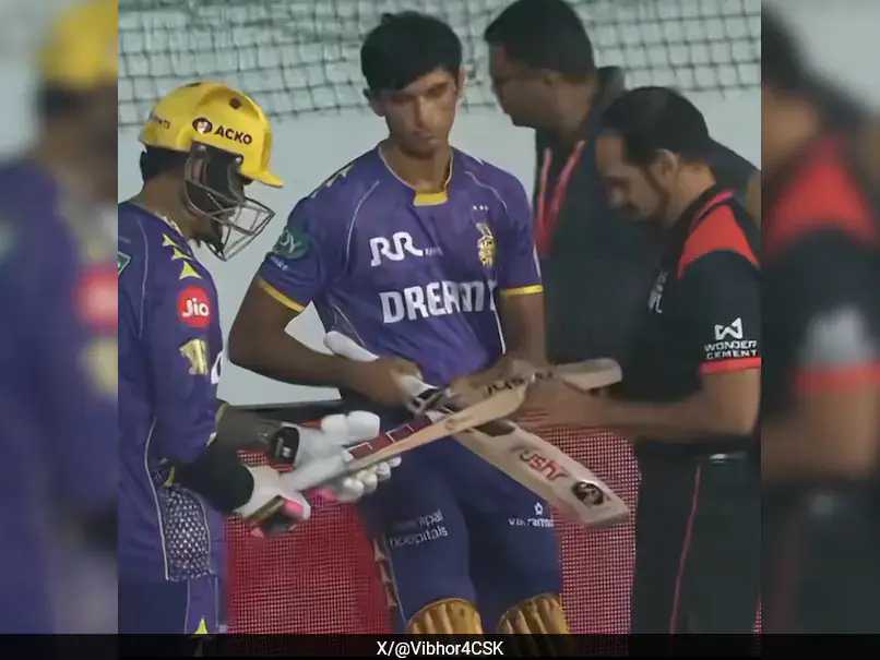 KKR youngster Angkrish Raghuvanshi was also present during Narine’s bat check, but he passed the test.