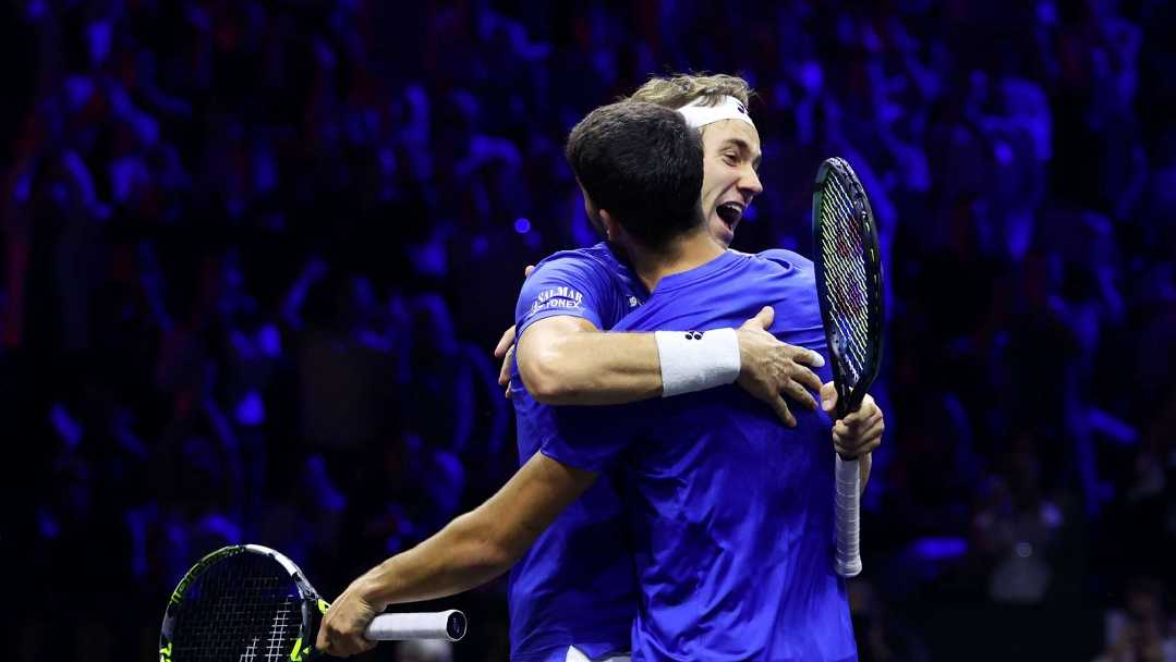 The result: a game-changing 6-2, 7-6(6) victory for Team Europe. Ruud and Alcaraz outlasted Shelton and Frances Tiafoe In a dramatic match-point ender, before turning to each other with simultaneous roars as they went in for an embrace.