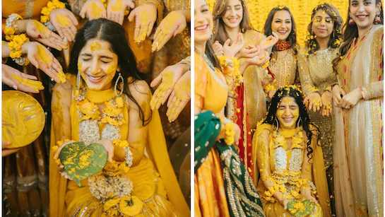Pakistani actress Mawra Hocane is treating us to her back-to-back pre-wedding snippets, and we are loving it. After her Dholki, Walima and Rukhsati outfits, it’s time for her Haldi ceremonies that are too adorable to watch. The star who got married, actor Ameer Gilani, shared another set of pictures from her Haldi ceremony, and we are in love with Mawra’s look. Her bridal glow reflected perfectly this time in a beautiful yellow look.