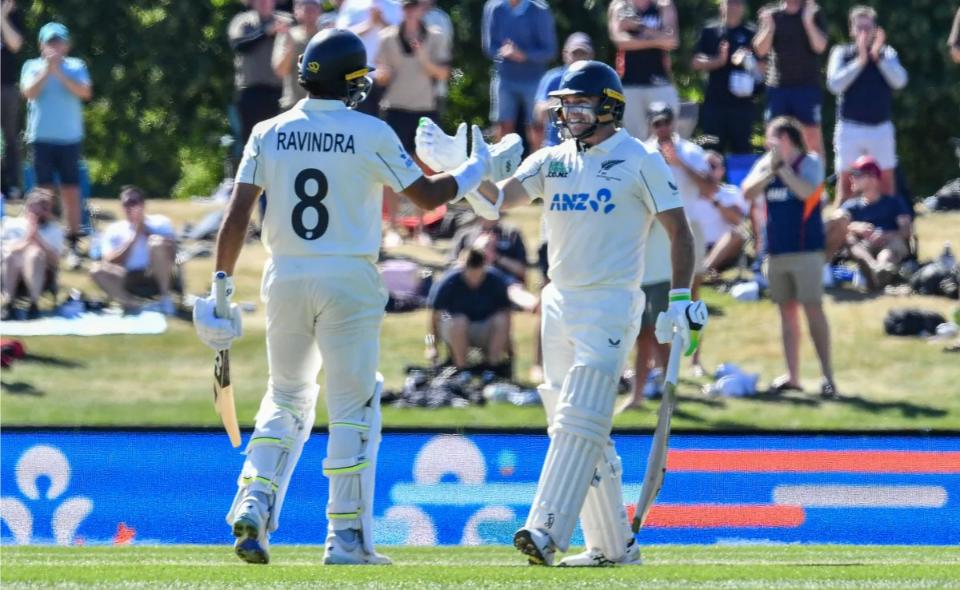 After a brief partnership with Kane Williamson, who fell for nine, Latham was on 40 when he was joined by Ravindra in an aggressive move.