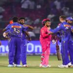 The defeat against Mumbai officially resulted in the Royals’ elimination from the IPL playoffs race. As the two teams exchanged handshakes after the match, Rohit walked up to Vaibhav and shared a few words of encouragement with the youngster, who would understandably be feeling low about his performance in the match.