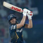 While Sai Sudharsan brought up his fifty off 30 balls, Gill had a slow start. He was on 21 off 19 after eight overs. But in the next three, he hit three sixes – one each against Axar, Kuldeep Yadav and Vipraj Nigam. He reached his fifty off 33 balls, with a four off Chameera. It was his first four of the innings. As if he had committed a mistake, he hit the following delivery for a six over square leg.
