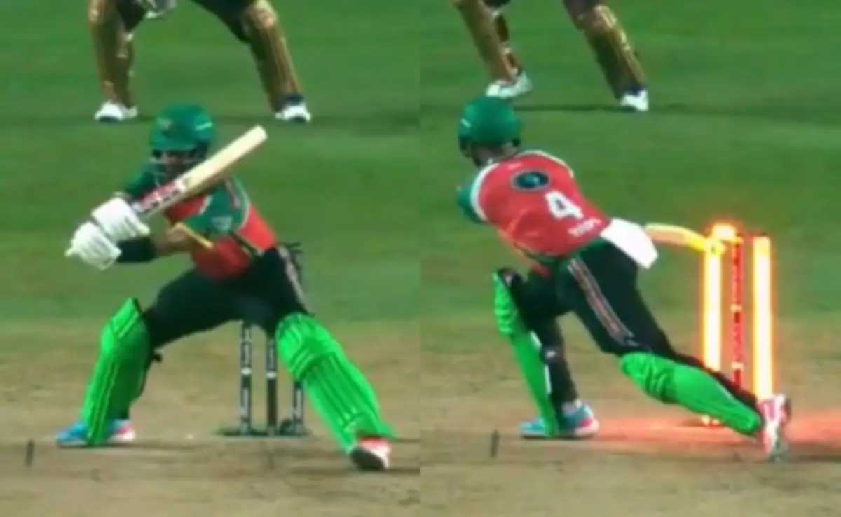 The incident took place in the 14th over of GAW’s innings, when pacer Terrance Hinds trapped Hope with his brilliant delivery. On the last ball of the over, Hope tried to play a switch-hit on the wide delivery but ended up hitting the stumps with his bat.