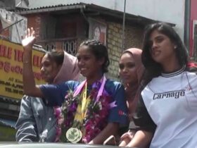 Sri Lankan sprinter Fathima Shafiya Yamick received a grand welcome in her hometown in Kandy following her historic ...
