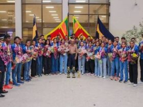 The Sri Lankan contingent which were runners-up at the 2025 South Asian Athletics Championship held in Ranchi, India, ...