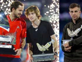 A number of ATP players, including Daniil Medvedev and Andrey Rublev—as well as their coaches, tour staff and ...