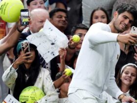 LONDON (AP) — Carlos Alcaraz’s latest up-and-down Wimbledon performance began with a dropped set. Later Sunday, he was ...