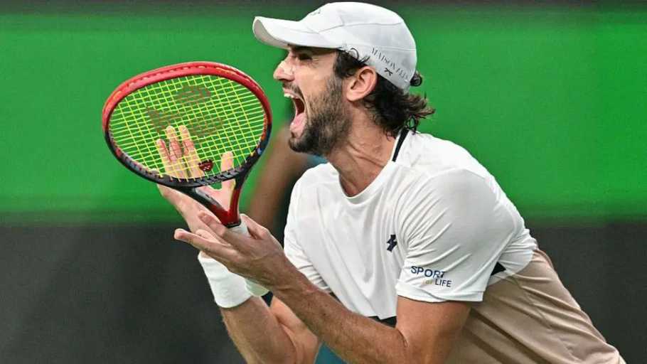 He sealed the success with a searing forehand down the line and, after hugging Rinderknech at the net, sprinted off court and up to one of the boxes to celebrate with his coach and family.