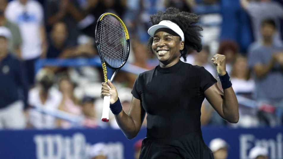 Venus Williams made a winning return to the singles court at age 45 in Washington D.C. on Tuesday night, defeating 23-year-old countrywoman Peyton Stearns in the first round of the WTA 500 event, 6-3, 6-4.
