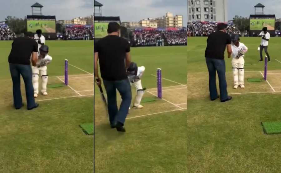 Legendary India captain MS Dhoni on Thursday inaugurated the Velammal Cricket Stadium near Chintamani in Madurai. Crowd turned in huge numbers to get a glimpse of the sporting icon. A heartwarming moment captured the attention when Dhoni was walking out to bat during the ceremony. A young fan, who was set to keep the wickets as Dhoni would bat, came forward and touched the feet of the India great. Dhoni humbly shook hands with the cricketer and blessed him before demonstrating a few batting shots at the centre stage.
